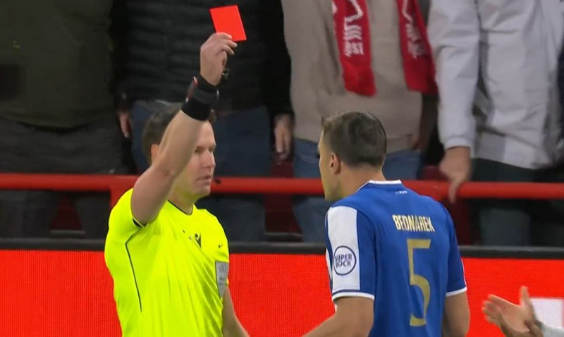 Była ósma minuta meczu Nottingham Forest – FC Porto. To właśnie wtedy rozpoczął się koszmar FC Porto. W niegroźnej sytuacji Jan Bednarek w środku boiska wyprostowaną nogą zaatakował w okolicach kolana Chrisa Wooda. Holenderski sędzia Danny Makkelie po obejrzeniu powtórki, pokazał reprezentantowi Polski czerwoną kartkę. Przez kilka minut rozgrzewał się wtedy Jakub Kiwior, który rozpoczął mecz na ławce rezerwowych, bo trener Farioli obok Bednarka wystawił doświadczonego, 41-letniego Brazylijczyka Thiago Silvę.